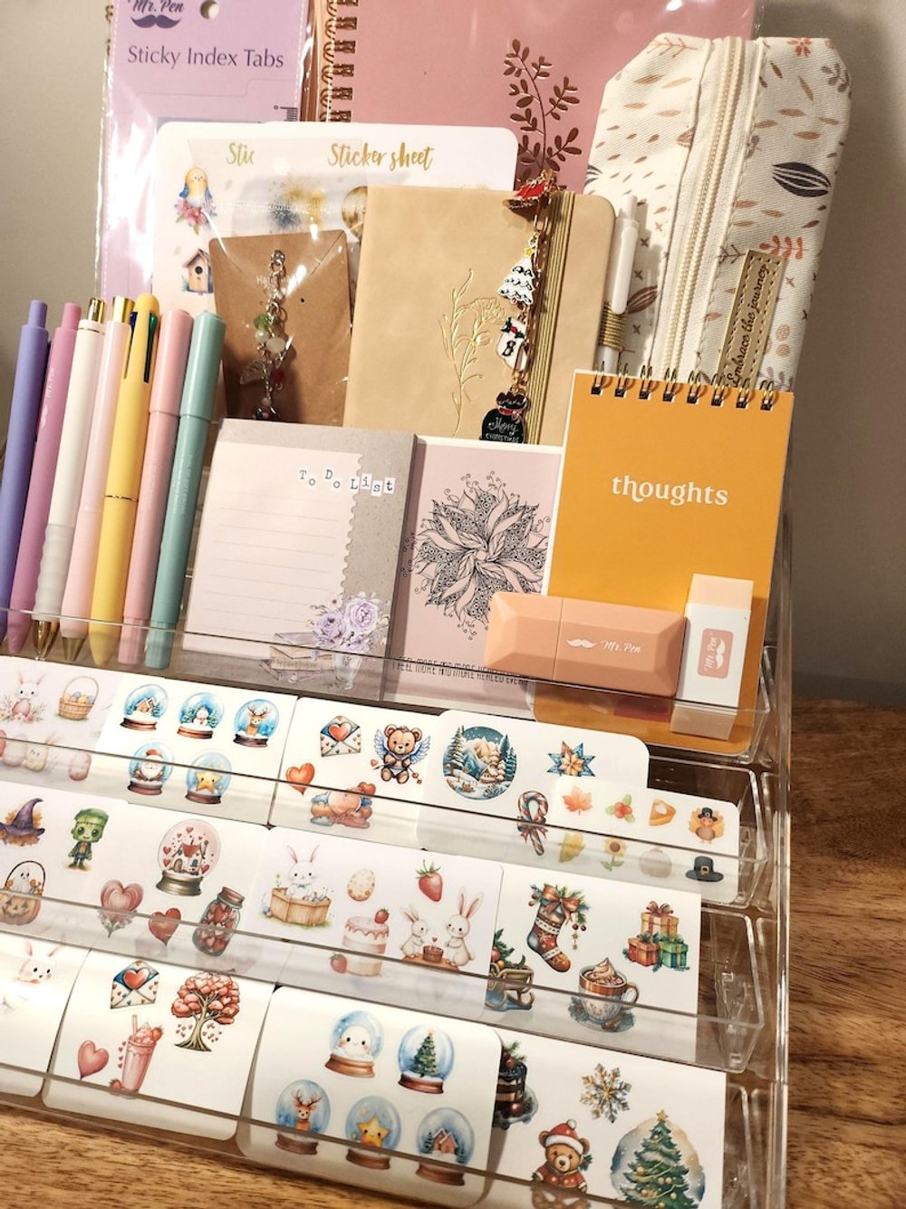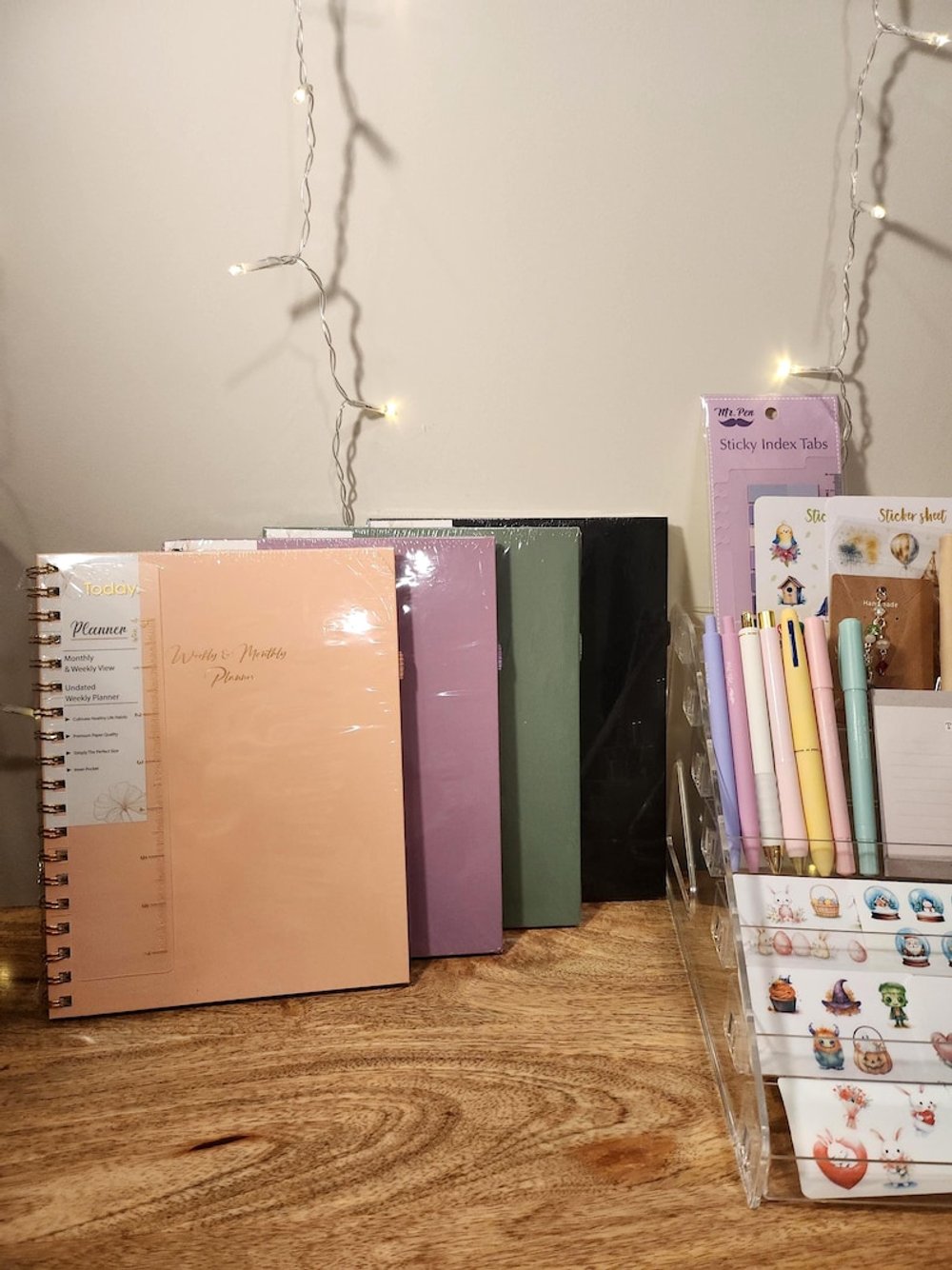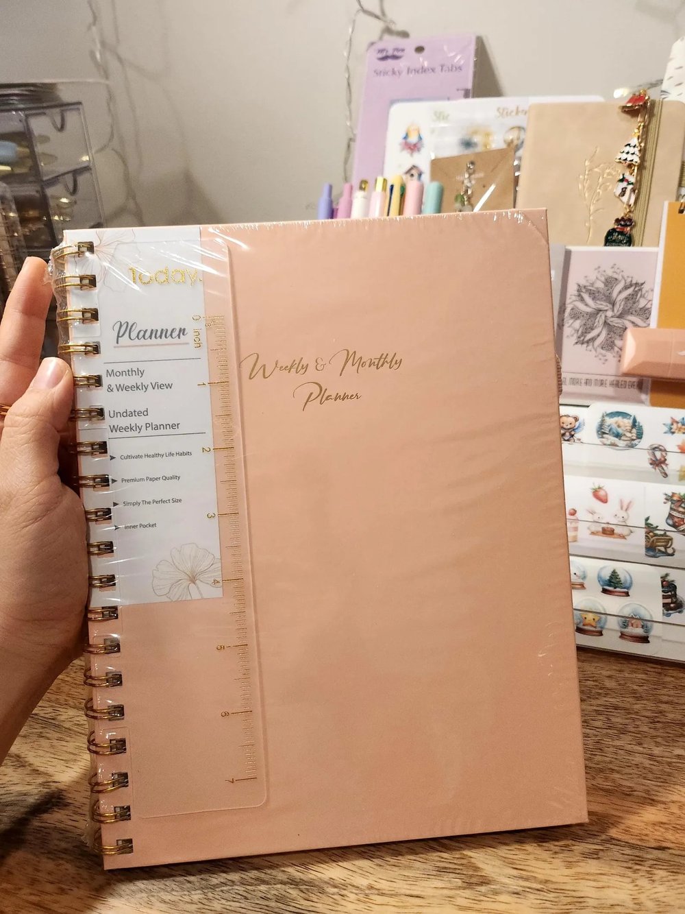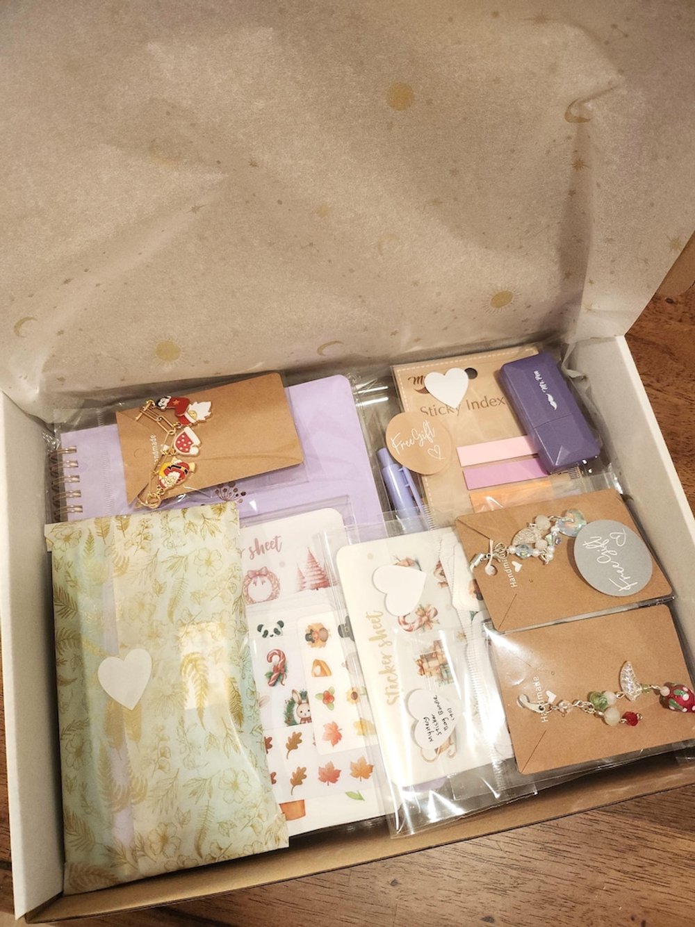 This stationery bundle comes with a beautiful undated monthly & weekly planner or a large lined notebook, high-quality stationery goodies, and bunch of festive and seasonal handmade stickers. Test your luck today to see what items you can get :)