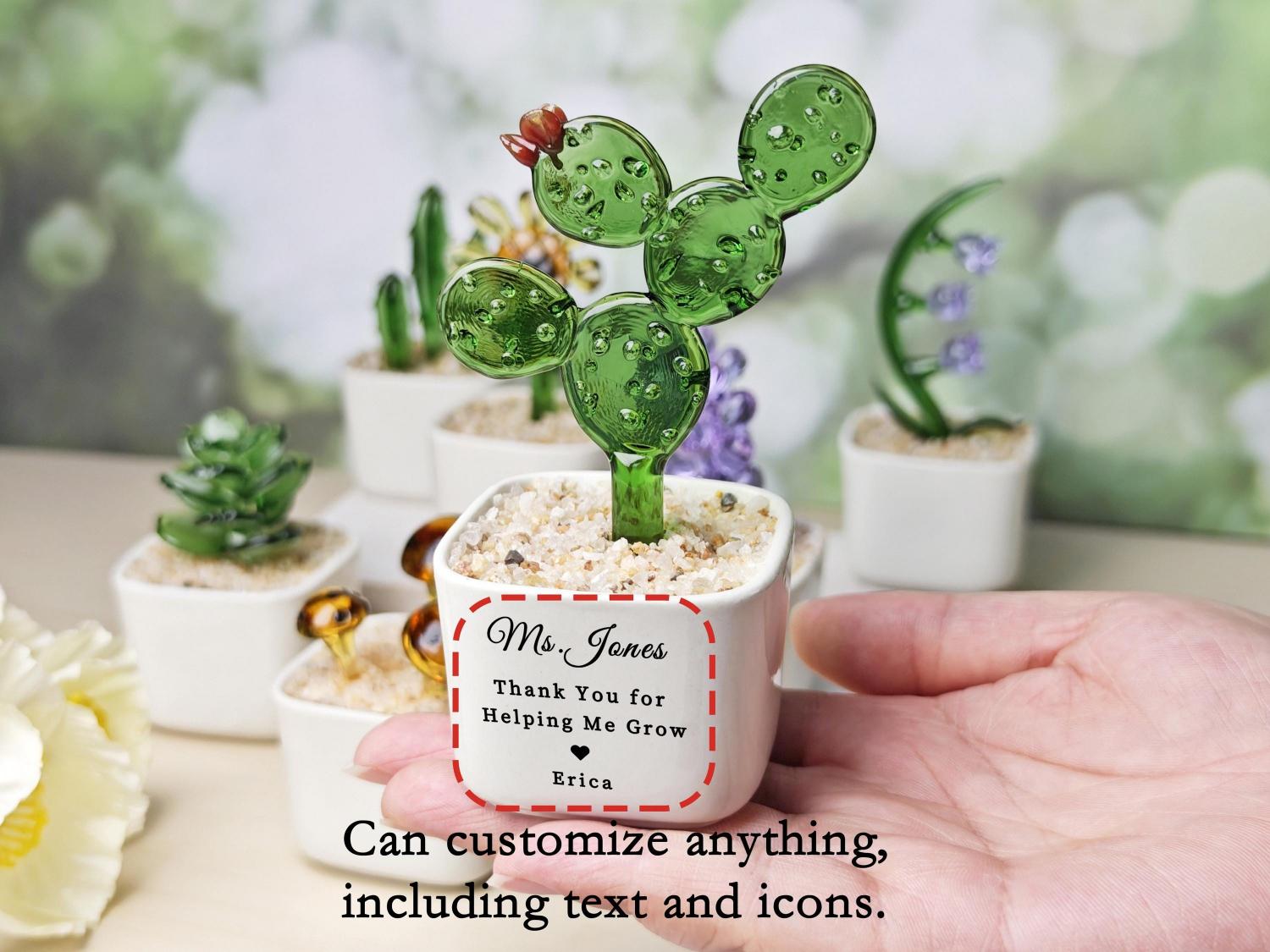 Each tulip is individually hand-blown from high-quality colored glass, ensuring a unique, artful finish with delicate light-catching brilliance. The flower stands approximately 4.5 inches tall with a width of 2.4 inches, nestled in a smooth white ceramic pot filled with decorative pebbles for an elegant, lifelike display. Choose from five stunning color options to match her personality or home décor. The ceramic pot can be beautifully engraved with a custom name, date, or short message, making it a truly one-of-a-kind keepsake.