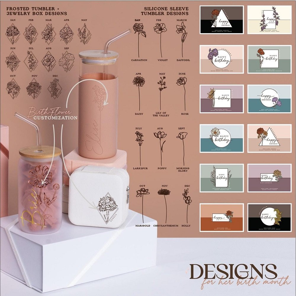 Add a deeply personal touch by customizing the set with a name and selecting the birth flower that represents the recipient’s special month. With a range of color options to choose from, you can create a bespoke gift that perfectly matches her style and makes every moment feel uniquely hers.
