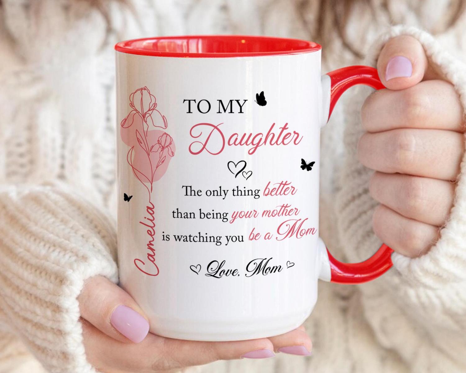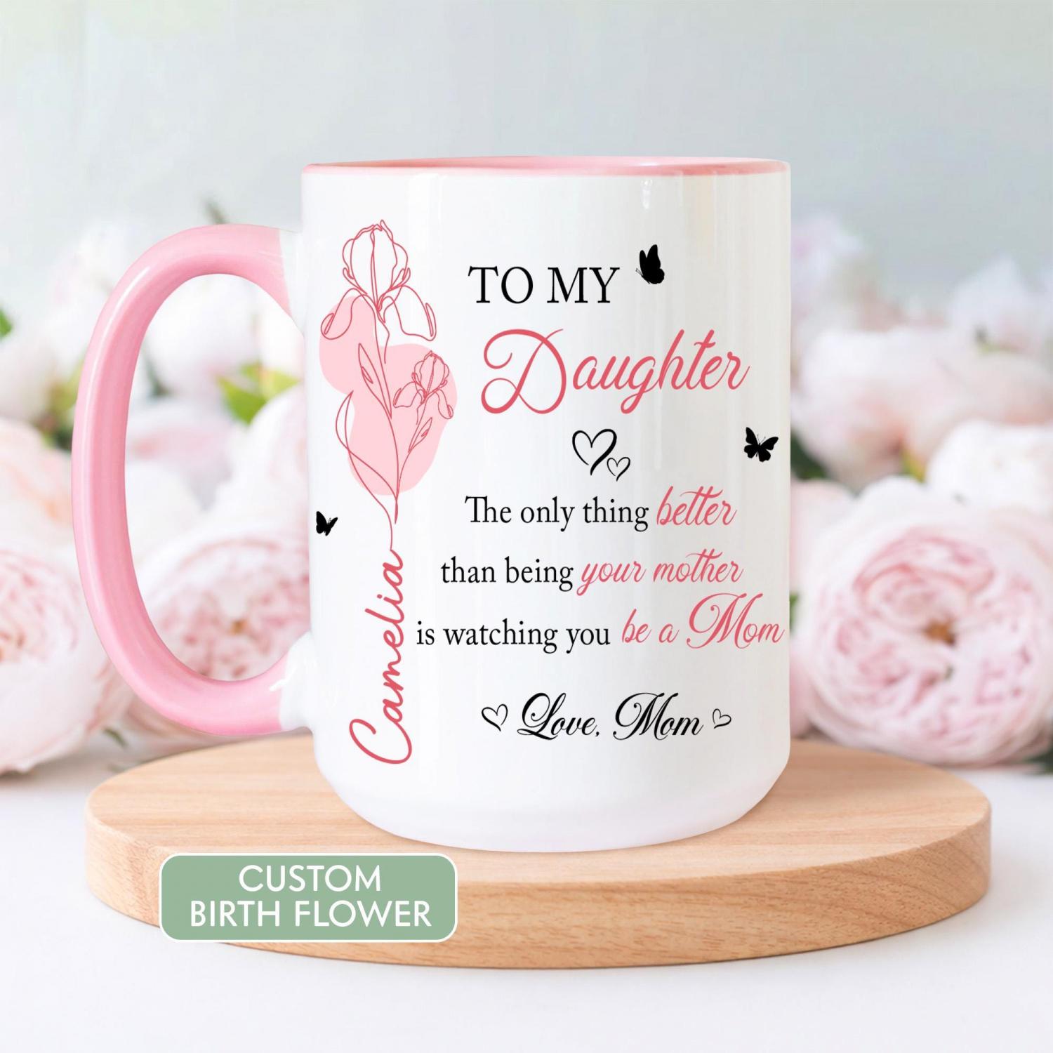 Celebrate the unbreakable bond between mother and daughter with this Personalized "To My Daughter" Coffee Mug. Featuring the heartfelt message "The Only Thing Better Than Being Your Mother Is Being Your Friend", this mug is a daily reminder of the love, laughter, and friendship you share. Customized with her name and birth month flower, it transforms a simple morning ritual into a moment of connection and gratitude.