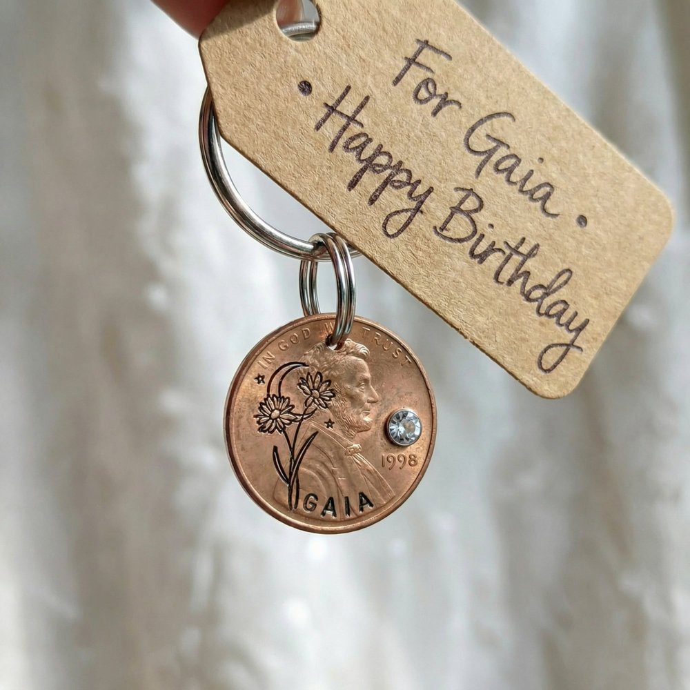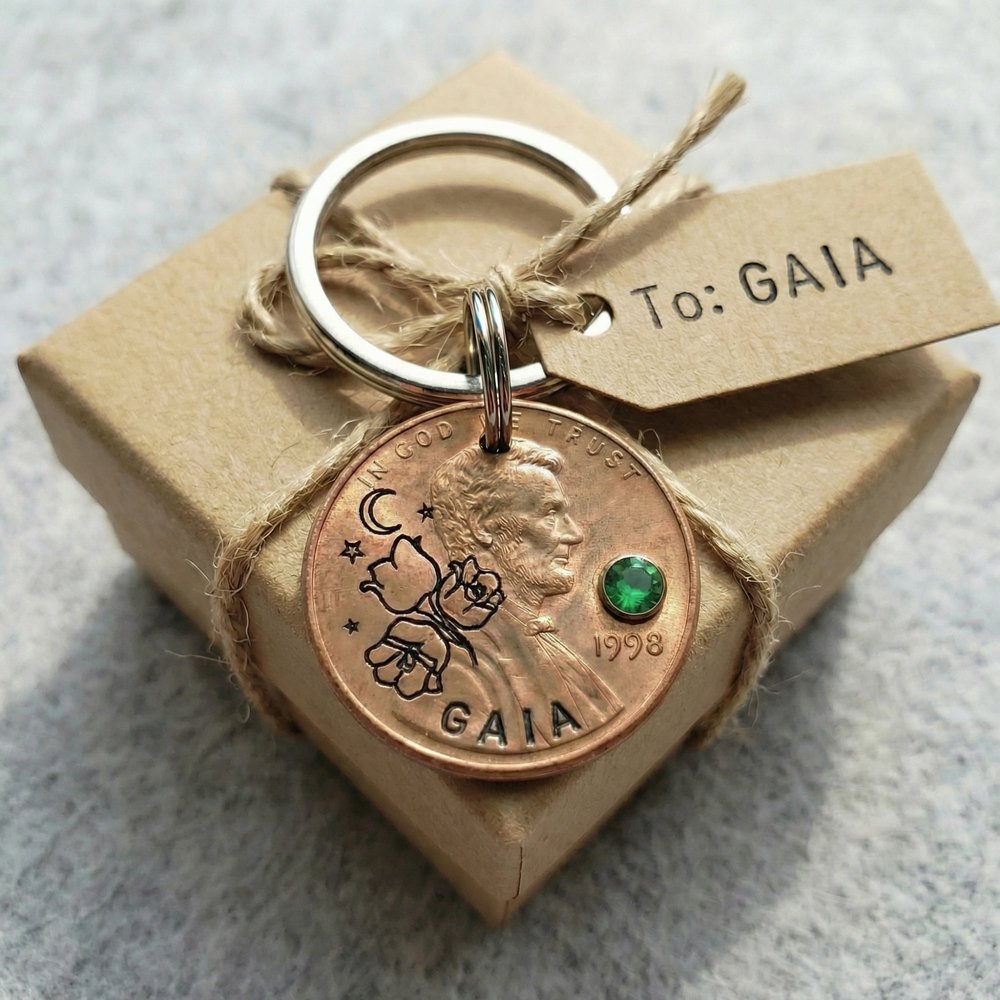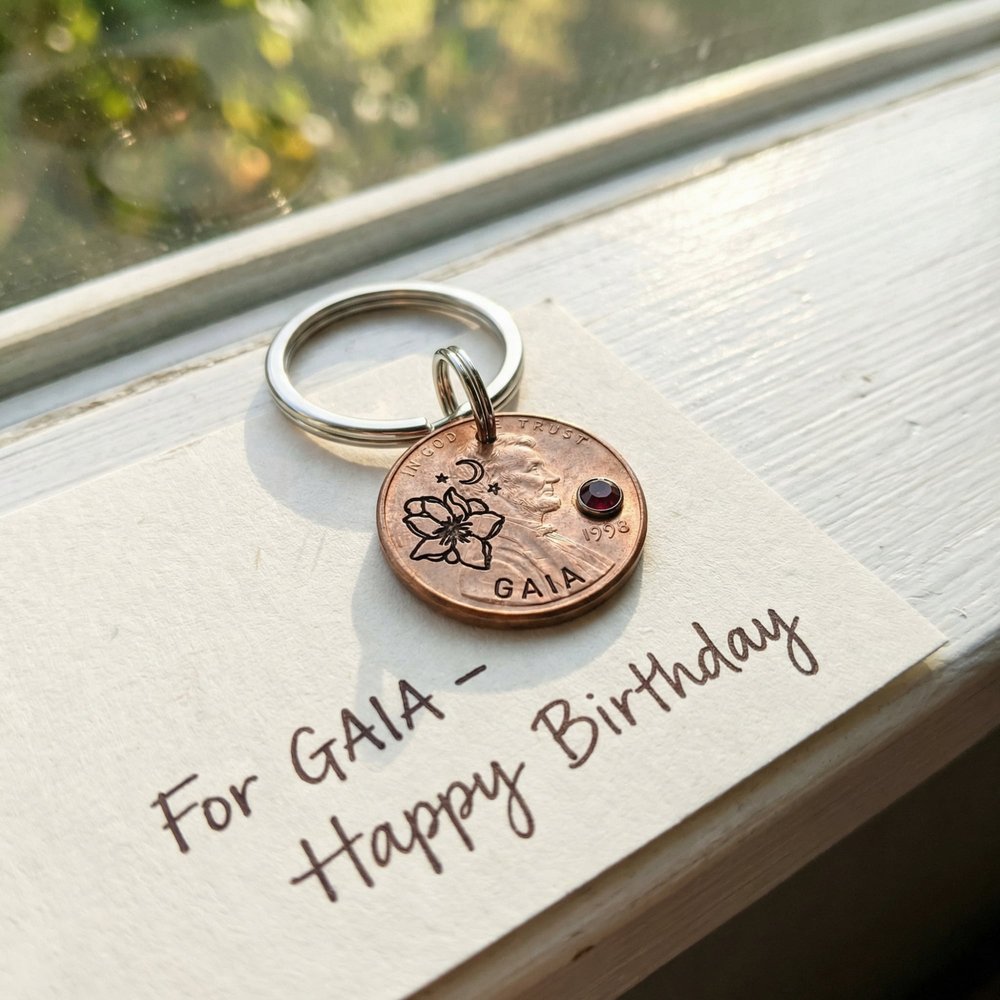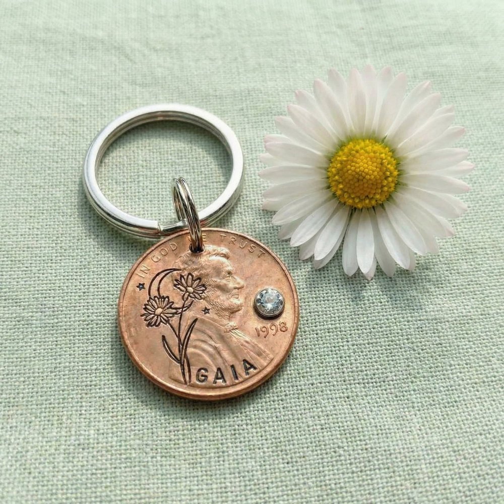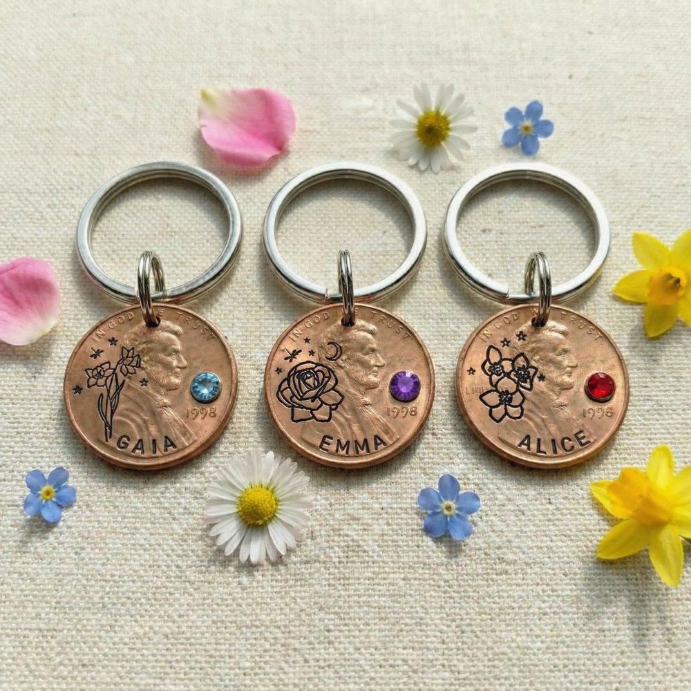 Tell her story in metal and bloom. Choose her birth flower and stone, add her name and year, and create a keychain that turns everyday moments into meaningful reflections. Order your Birth Flower & Birthstone Penny Keychain today—because the best gifts are those that grow more precious with time.