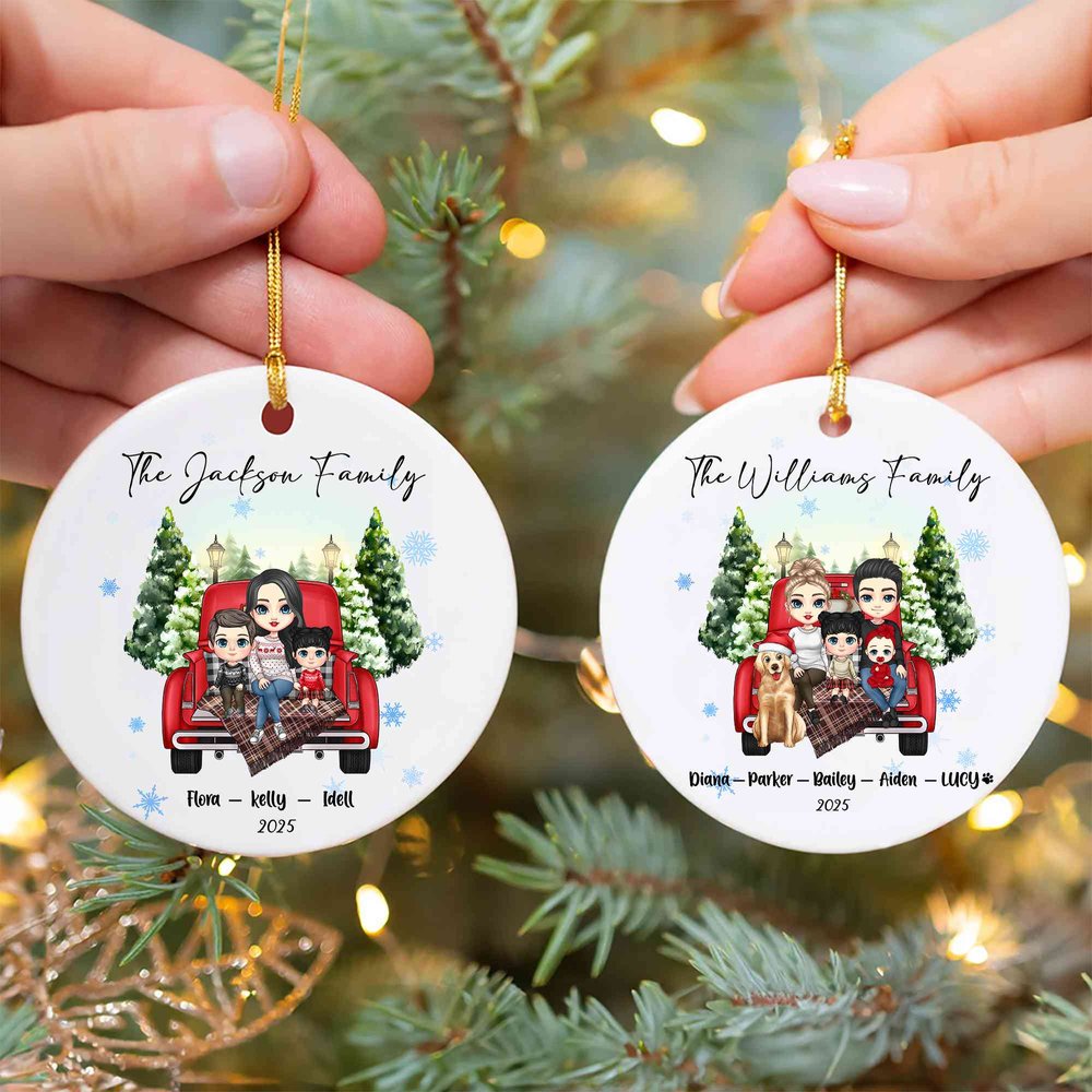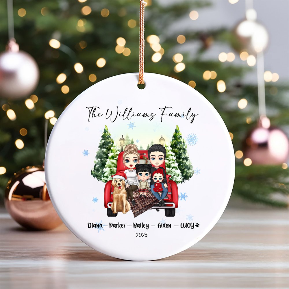 This ceramic ornament features adorable cartoon characters that capture the essence of holiday cheer. Whether you're with family, best friends, or your beloved dog, you can create your own custom character. Each ornament can be customized with a name, adding a unique touch to your holiday decor, symbolizing togetherness and cherished memories.
