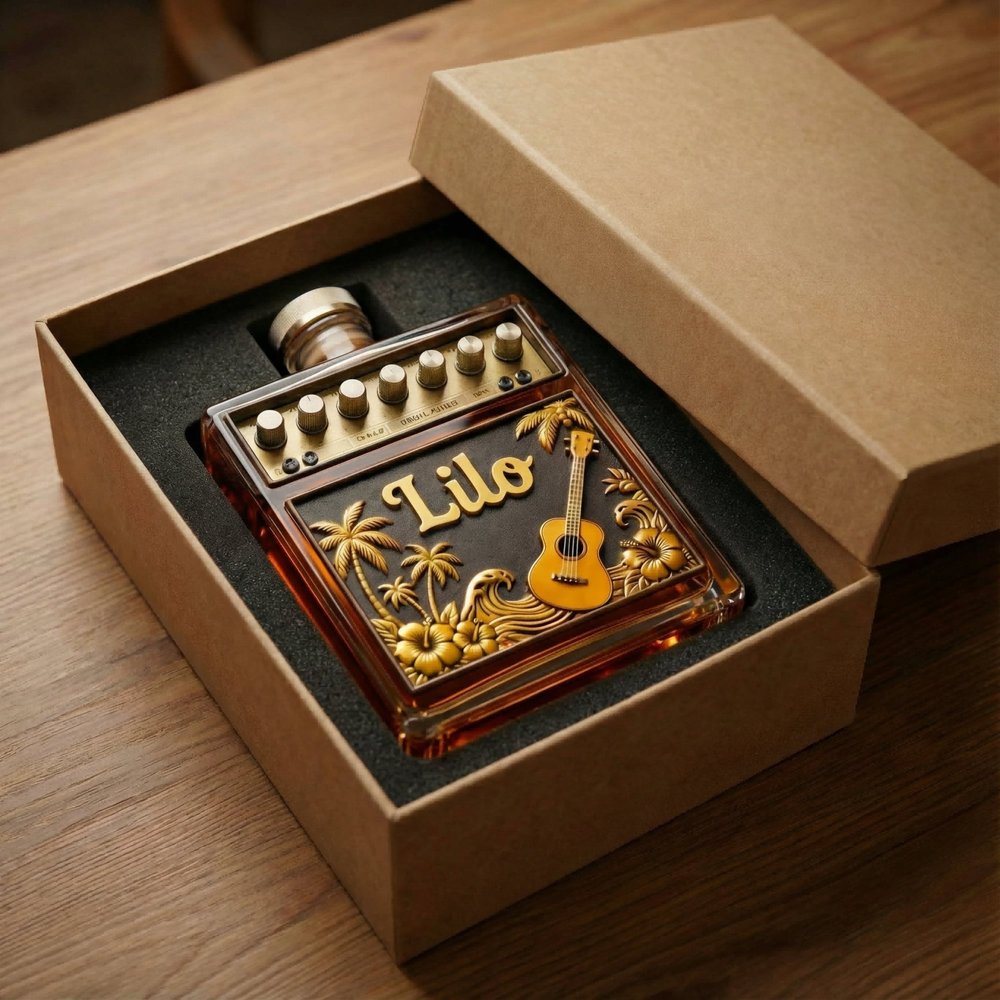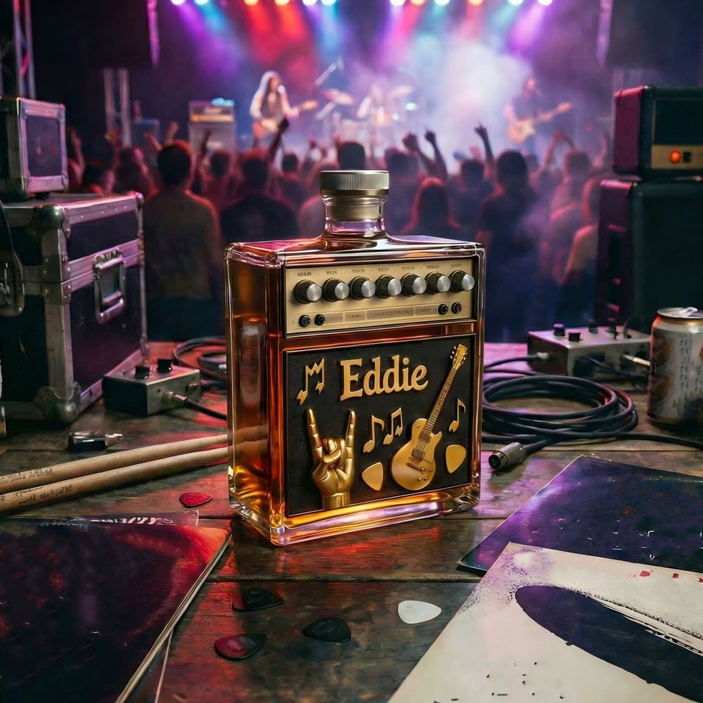 Crafted with meticulous attention to detail, this bottle features realistic control knobs, textured amplifier panels, and music elements that capture the spirit of classic guitar gear. The premium glass construction ensures both durability and a crystal-clear display of your favorite spirit.