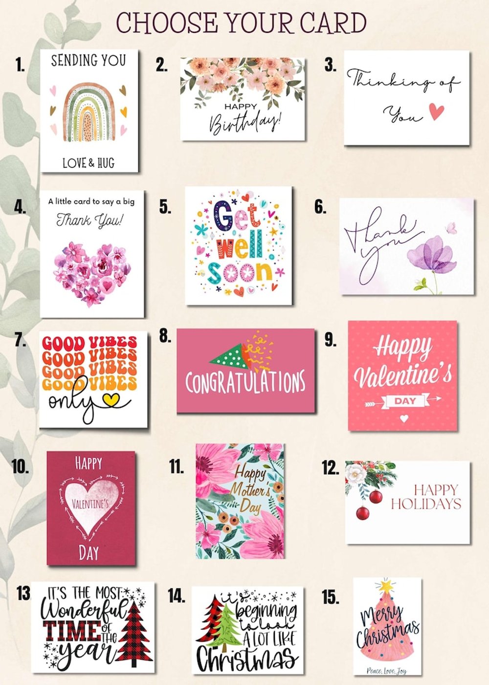 Choose from six unique box styles to match the recipient's personality. And select from fifteen beautiful card designs. Plus, customize the back with a heartfelt message to make it even more special.
