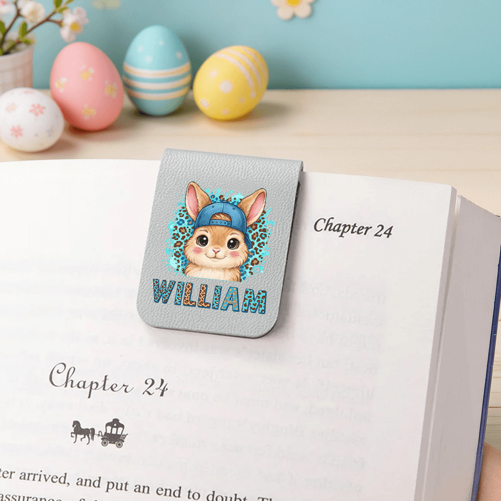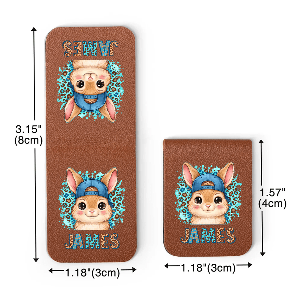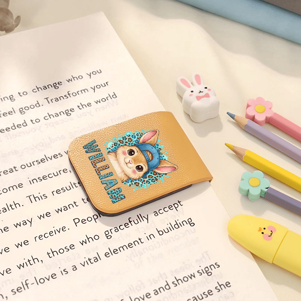Personalized Leopard Cartoon Rabbit Multicolor Magnetic PU Leather Bookmark Clip with Name Birthday Easter Gift for Kids Bookworms