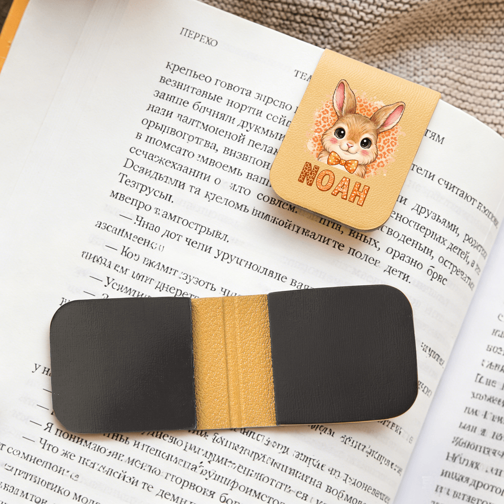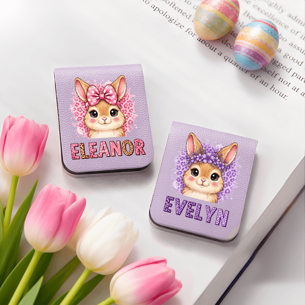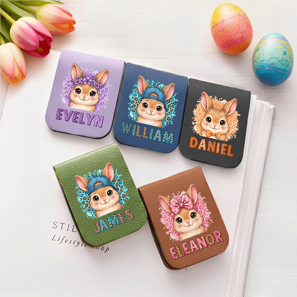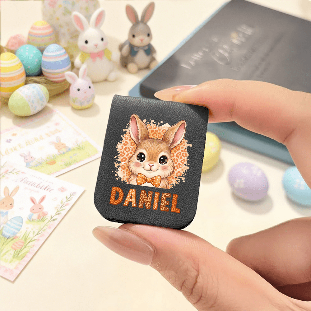 Personalized Leopard Cartoon Rabbit Multicolor Magnetic PU Leather Bookmark Clip with Name Birthday Easter Gift for Kids Bookworms