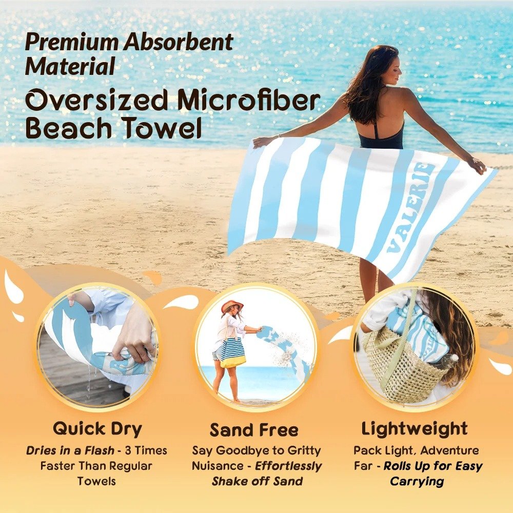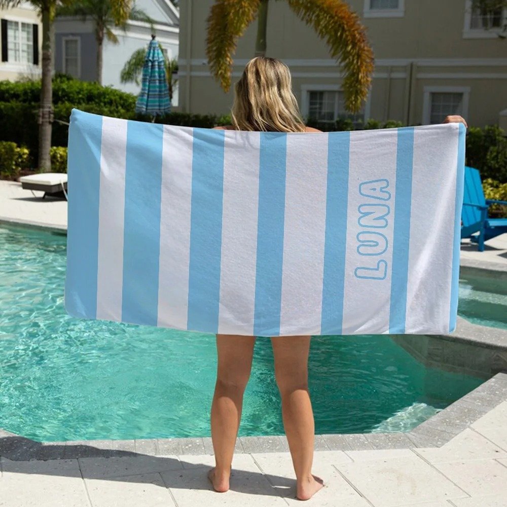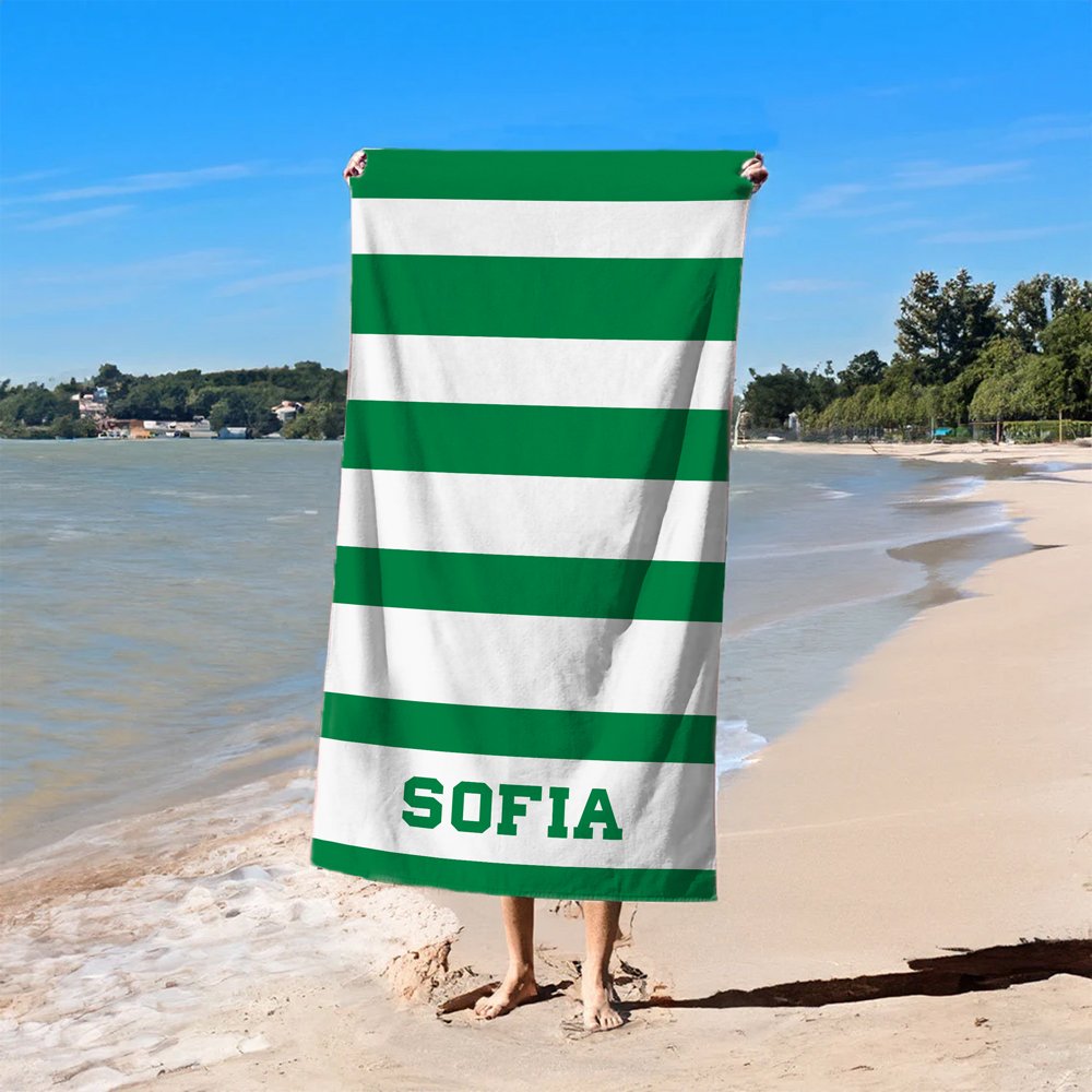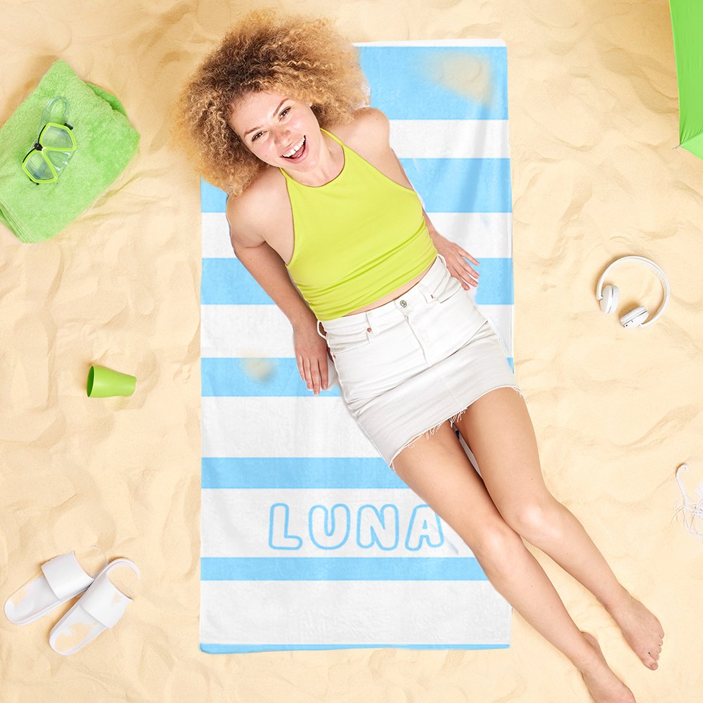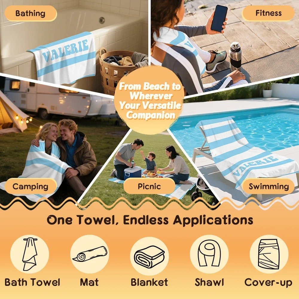This Personalised classic stripe beach towel makes your beach trip unique. Customizable name design allows you to stand out from the crowd and enjoy the enthusiasm of summer.