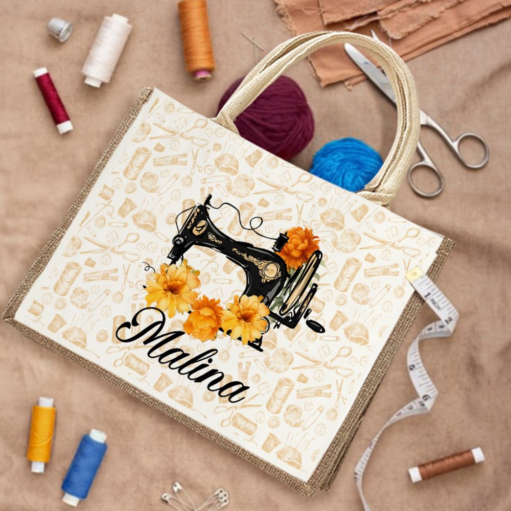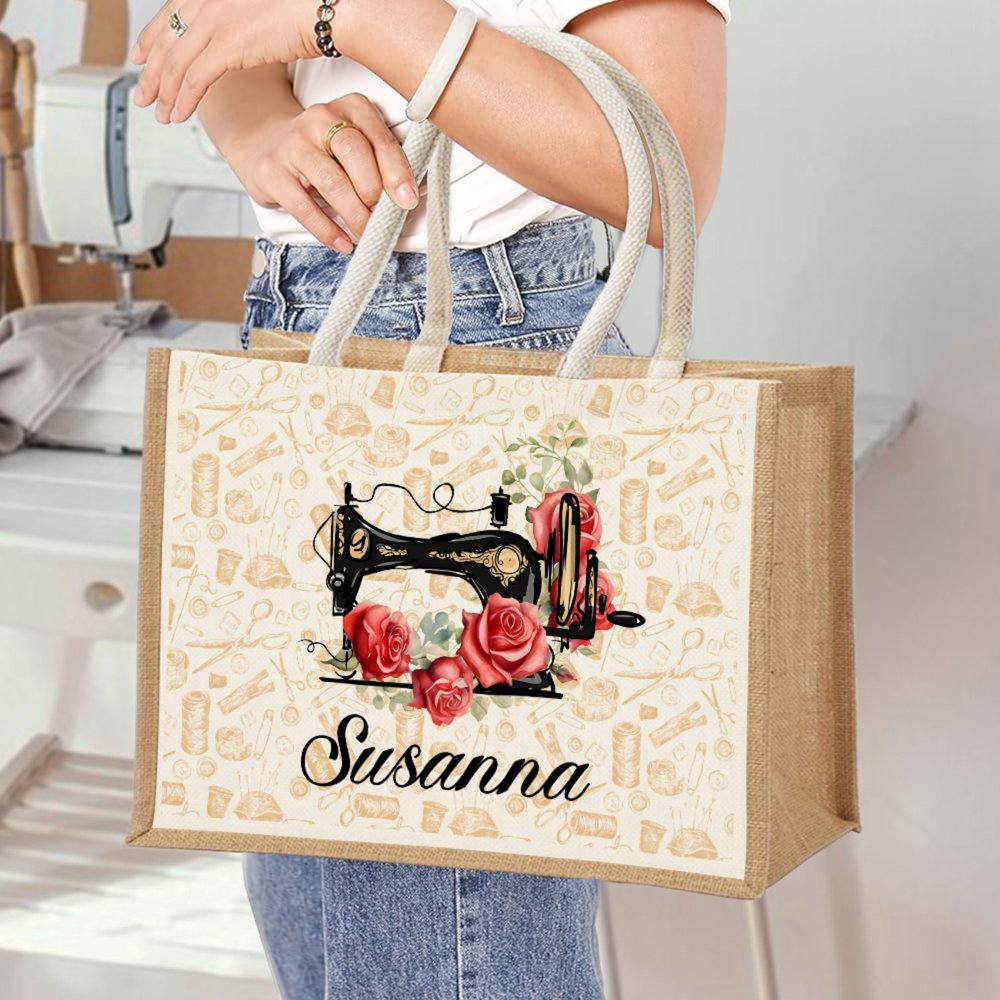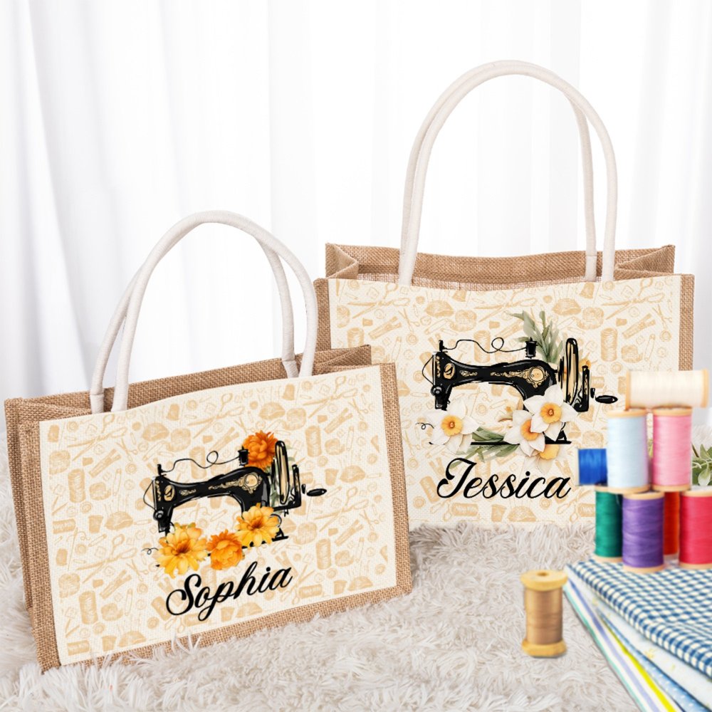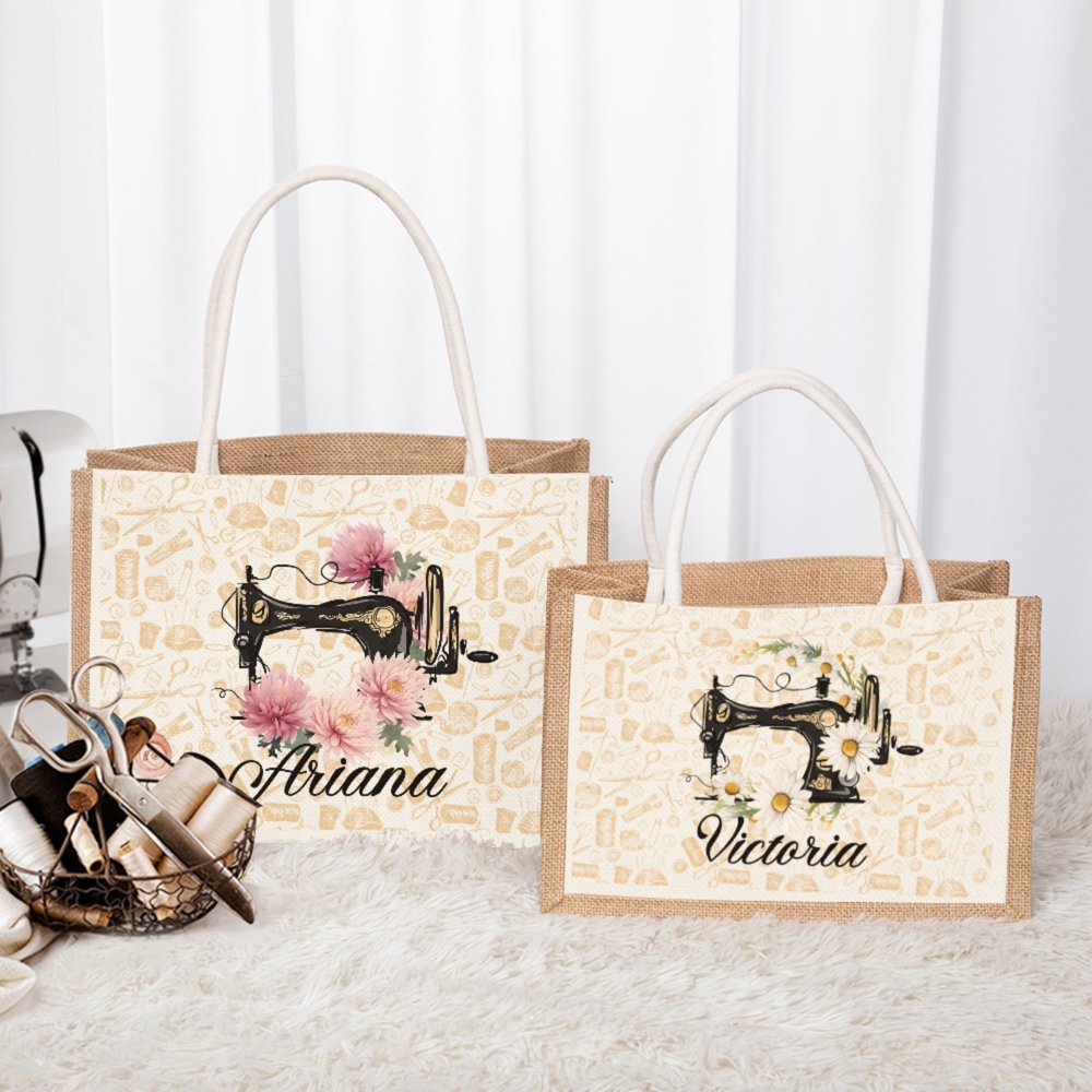 This jute tote bag has an exquisite sewing machine pattern on it, symbolizing the warmth of handwork and the joy of creation. It is matched with different birthday flowers every month to add a unique personal emotion to the bag. You can also customize your name so that this bag is not only a storage tool for personal belongings but also a symbol of exclusive identity.