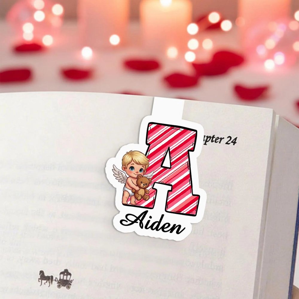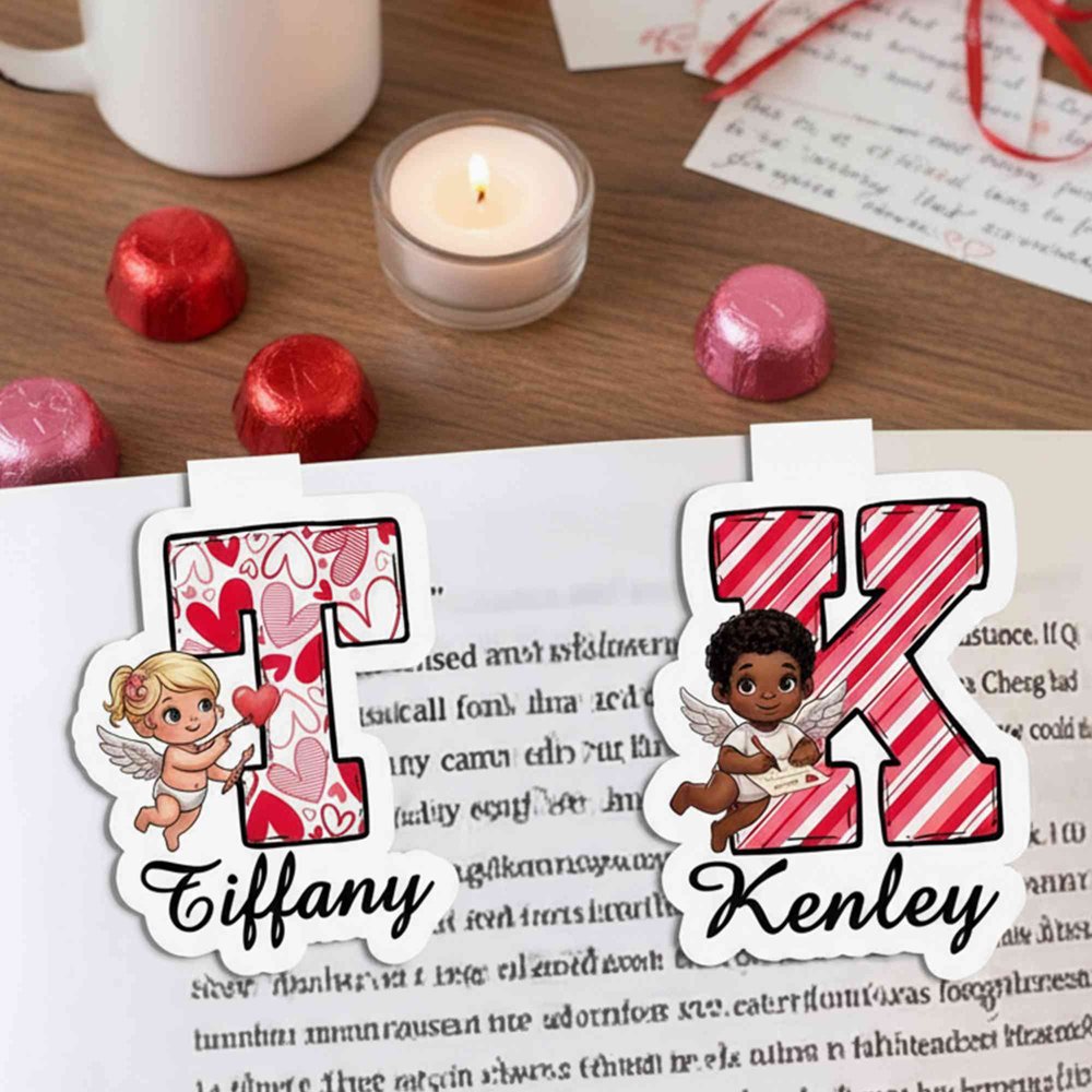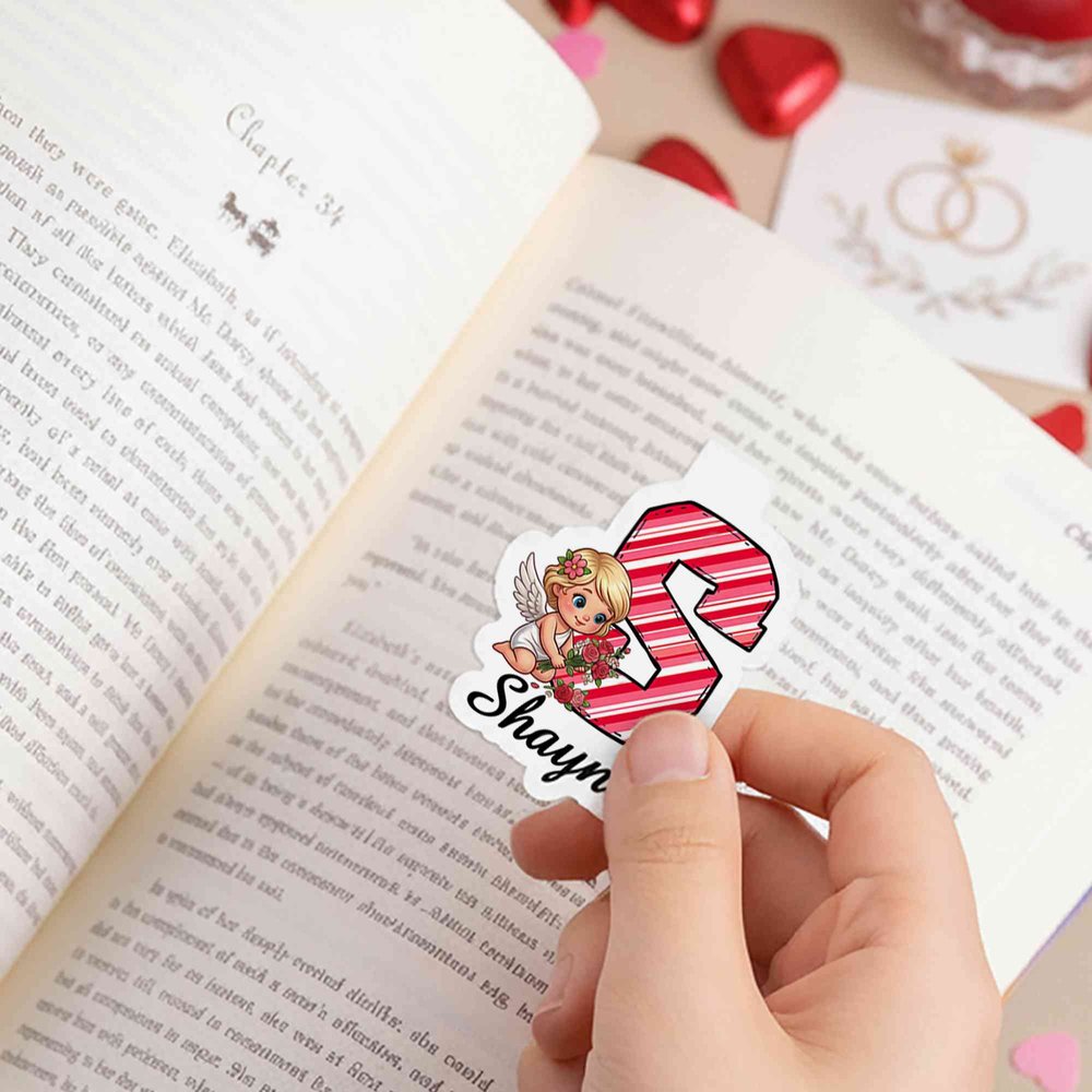 This bookmark clip holder features a romantic Cupid angel design, adorned with classic Valentine's Day elements such as roses, hearts, and wings, creating a sweet and comforting aesthetic. It supports customization with your name and initial, cleverly blending personalization with romantic elements to make each bookmark clip unique and a special little moment of happiness for you.
