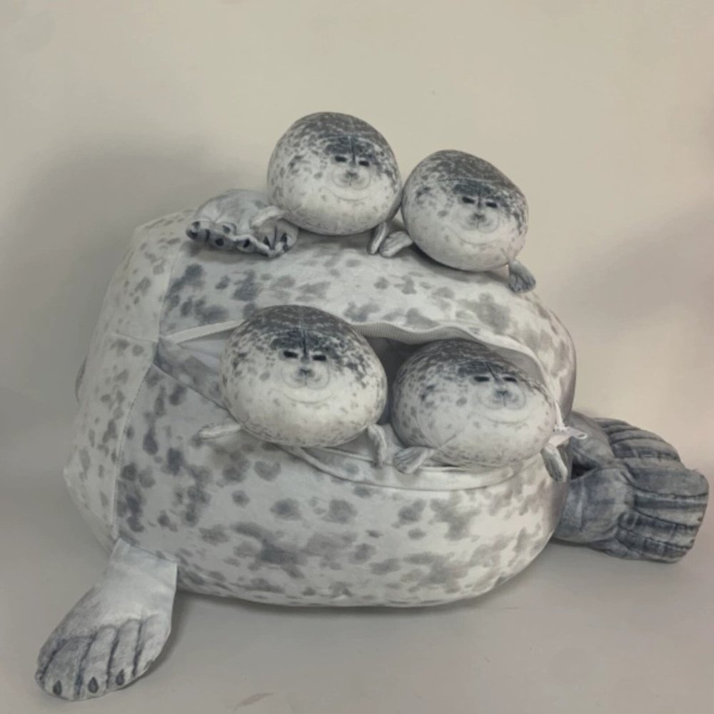 Bring the cuteness of the ocean home with this realistic seal plush family set. It’s the perfect blend of soft comfort, clever storage, and adorable aesthetics!
