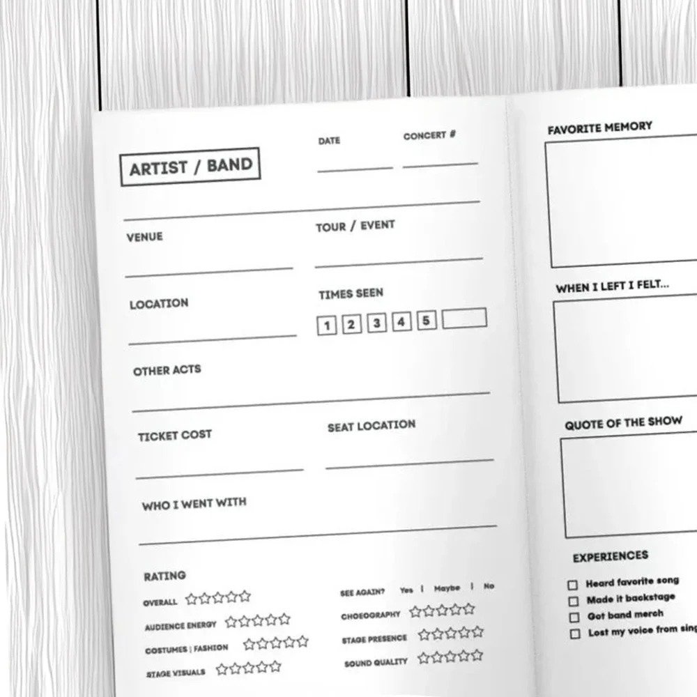 This thoughtful concert journal is designed to help you capture and treasure every amazing moment from your favorite shows. It turns wonderful live music experiences into lasting memories you can revisit anytime, making each concert feel magical all over again.